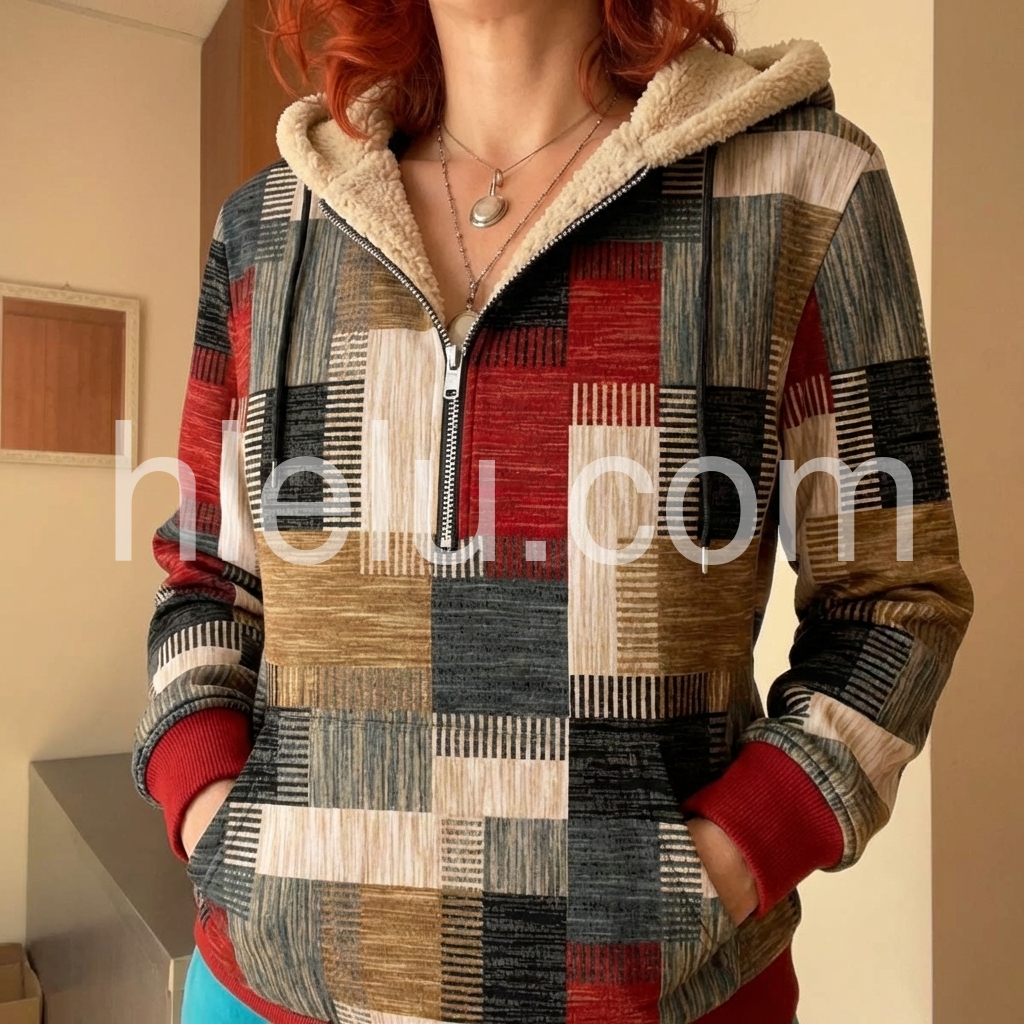 This versatile sweatshirt combines comfort with contemporary style through its distinctive patchwork design. The fleece lining provides warmth and softness against the skin, making it ideal for layering during cooler months. The zip-front closure allows for easy adjustment and ventilation, while the casual silhouette works seamlessly with jeans, joggers, or athleisure wear. Durable construction ensures lasting wear through frequent washing and everyday use. Perfect for weekend outings, casual work environments, or relaxed social gatherings.