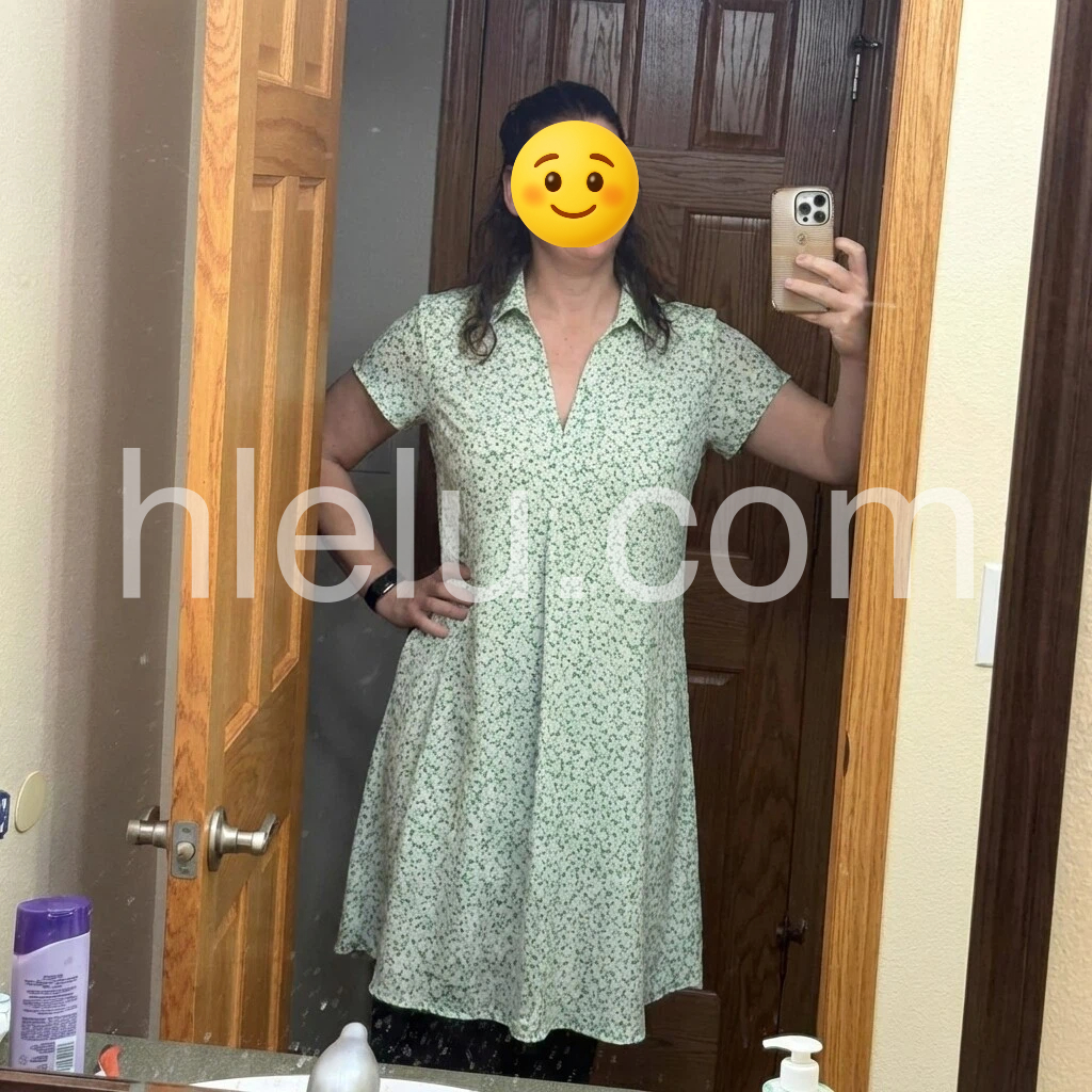 This shirt dress brings effortless, feminine charm to your wardrobe. The crisp white base, printed with tiny green florals, feels fresh and summery.