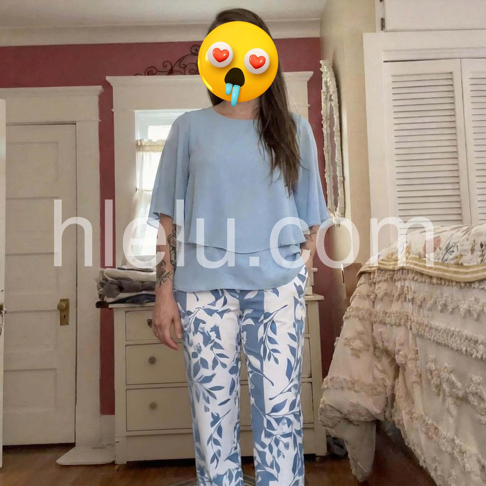 I wore this two-piece set on a recent cruise and received so many compliments! The light blue color is stunning, and the layered top perfectly hides any tummy insecurities. The pants are incredibly comfortable and flowy. Highly recommend for any summer vacation.
