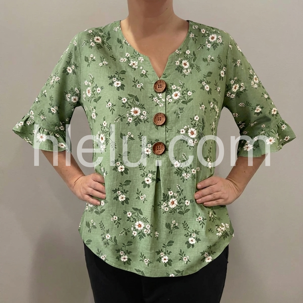 This blouse was created to bring soft, feminine charm to your everyday wardrobe. The delicate floral print on muted green feels fresh and timeless, never going out of style.