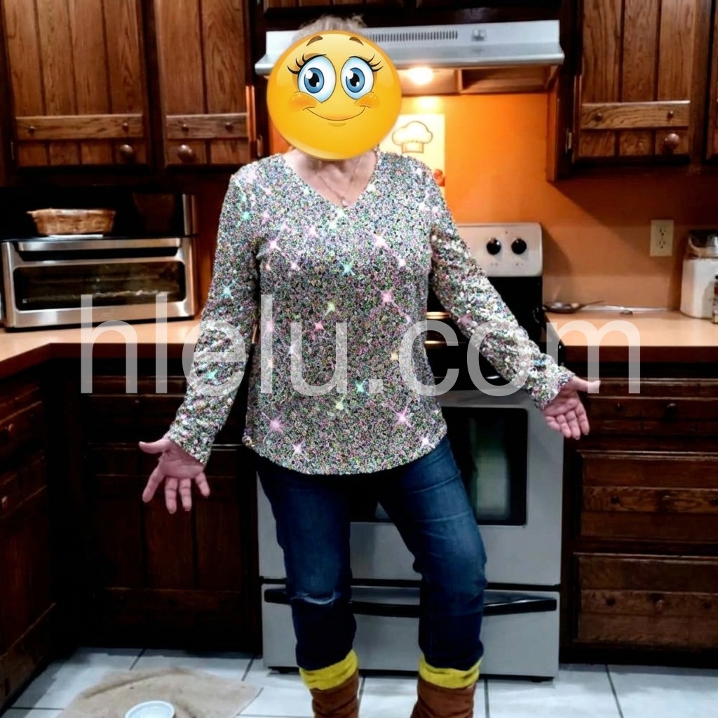 Disco Ball Tinsel Metallic Print Long Sleeve Top