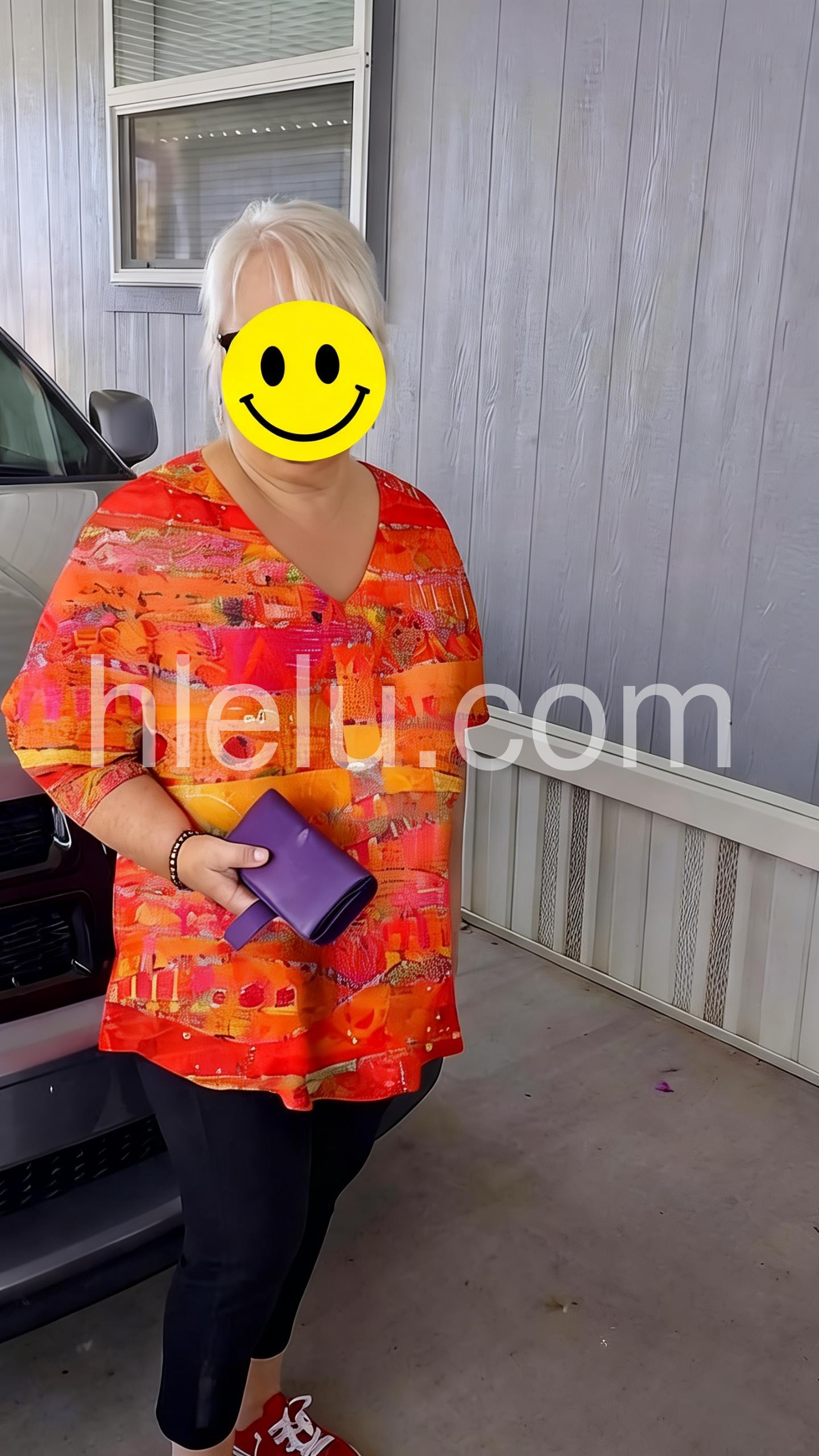 This loose-fit top features a striking abstract pattern in warm red, orange, and pink tones. V-neckline and three-quarter sleeves for comfort. Lightweight fabric with a relaxed drape. Perfect for making a statement in casual or resort wear. Effortlessly stylish and eye-catching.