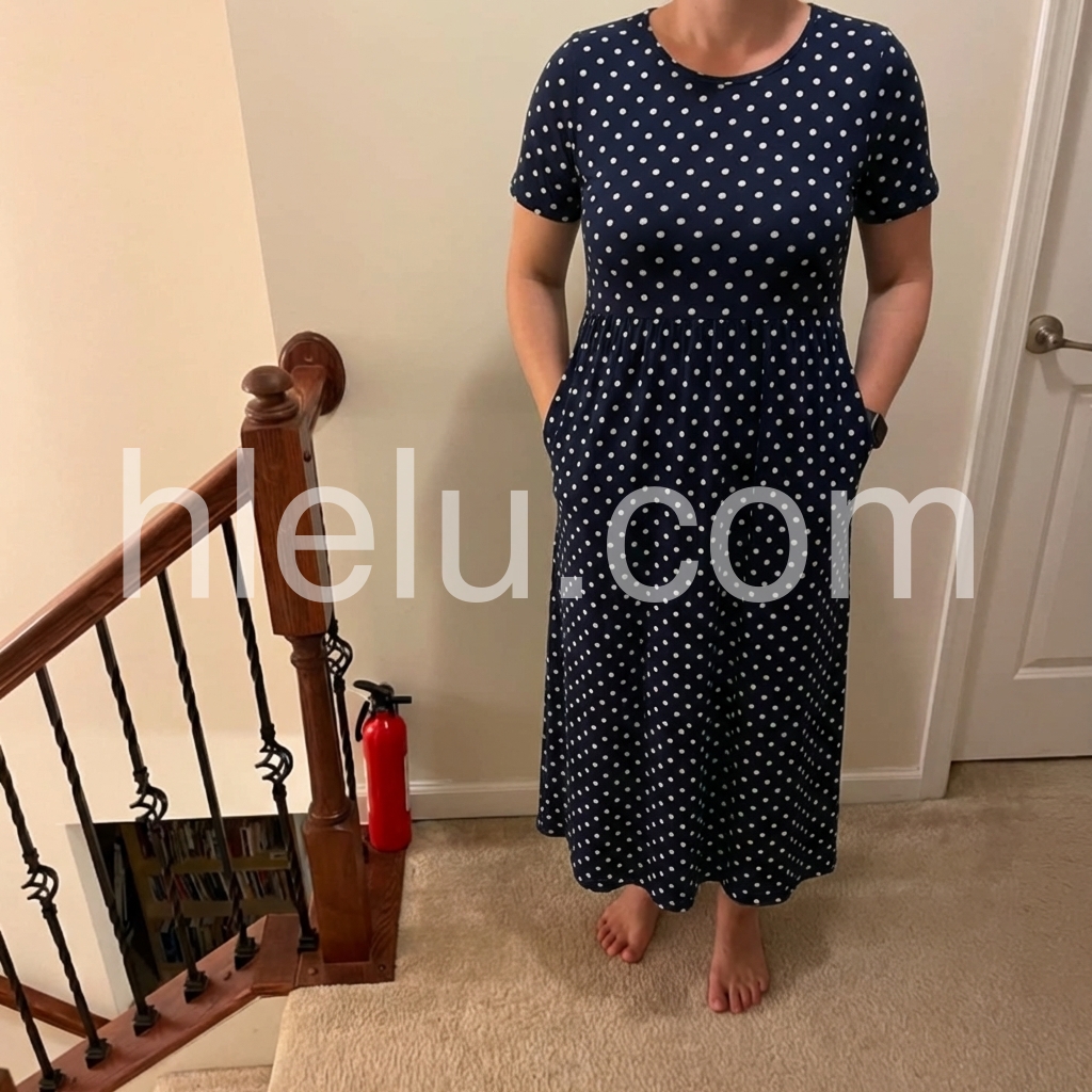 Navy Polka Dot Flowy Midi Dress with Pockets