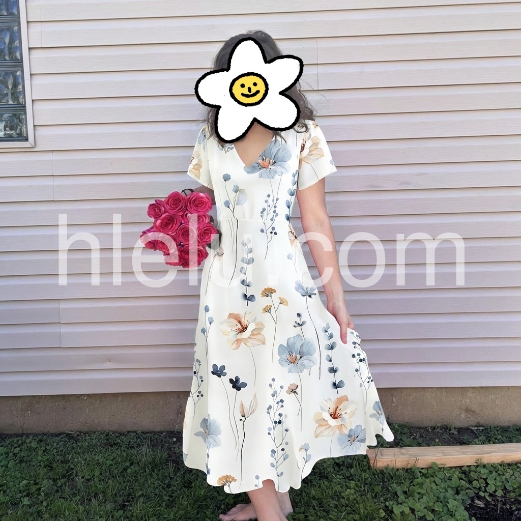 This midi dress features fresh watercolor florals and a side slit for a graceful flow. The V-neck and short sleeve design is lightweight and summer-friendly.
