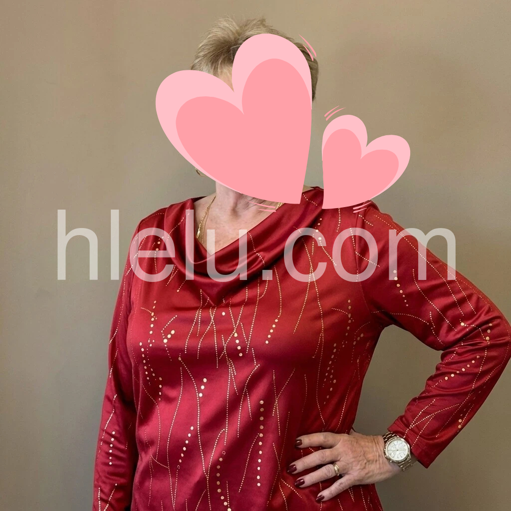 Elevate your wardrobe with this sophisticated red long sleeve top, featuring a subtle gold dotted pattern that adds a refined touch. Crafted for comfort and style, its tailored fit complements various occasions, making it an ideal choice for layering or wearing solo with ease. The gold accents catch the light delicately, enhancing your look with understated elegance throughout the day.