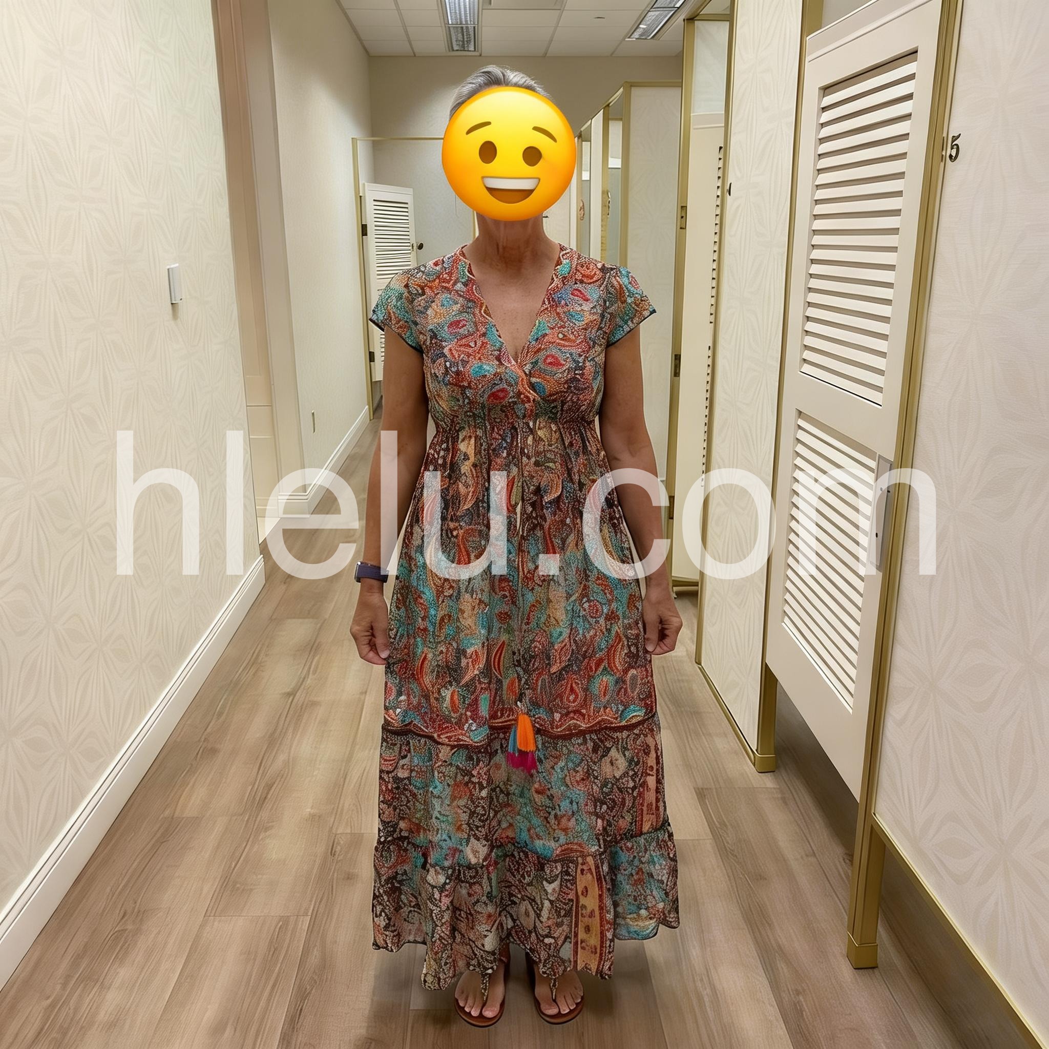 Introducing our elegant and versatile Special Multicolor V-Neck Maxi Dress. Crafted with a flattering v-neck design and made with high-quality material, this dress is perfect for any occasion. With a stunning multicolor pattern, this dress is sure to make a statement. Elevate your wardrobe with this must-have piece.