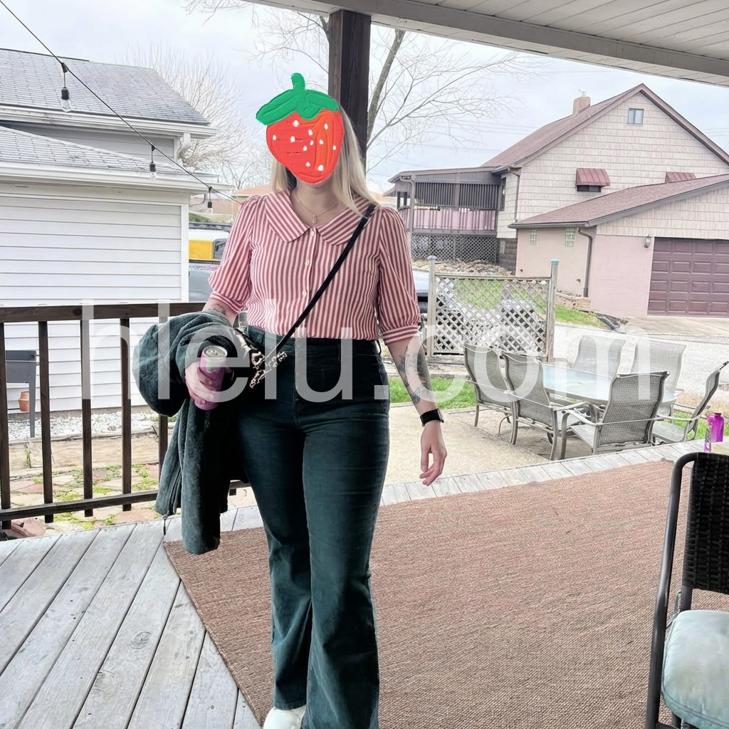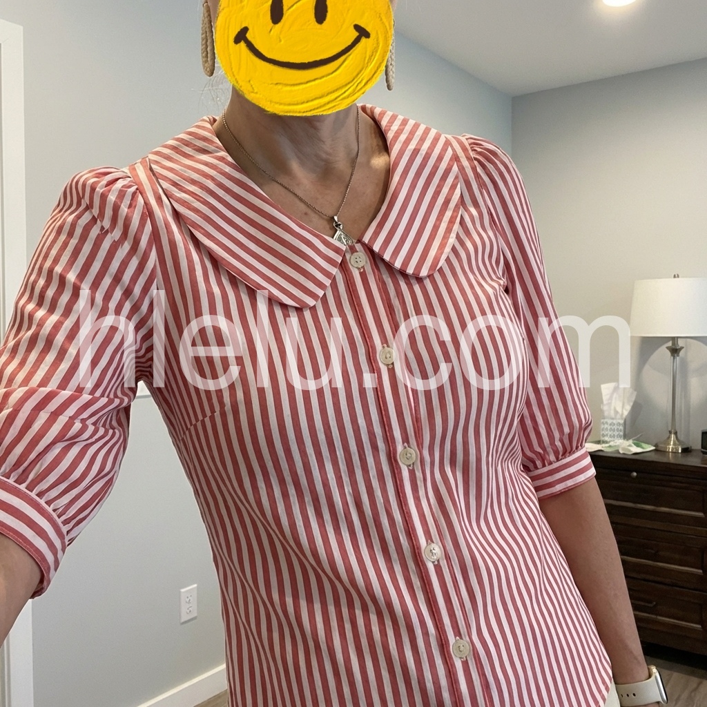 This blouse brings retro, feminine charm to your wardrobe. The classic red-and-white stripe print, paired with a sweet Peter Pan collar, feels endlessly romantic.