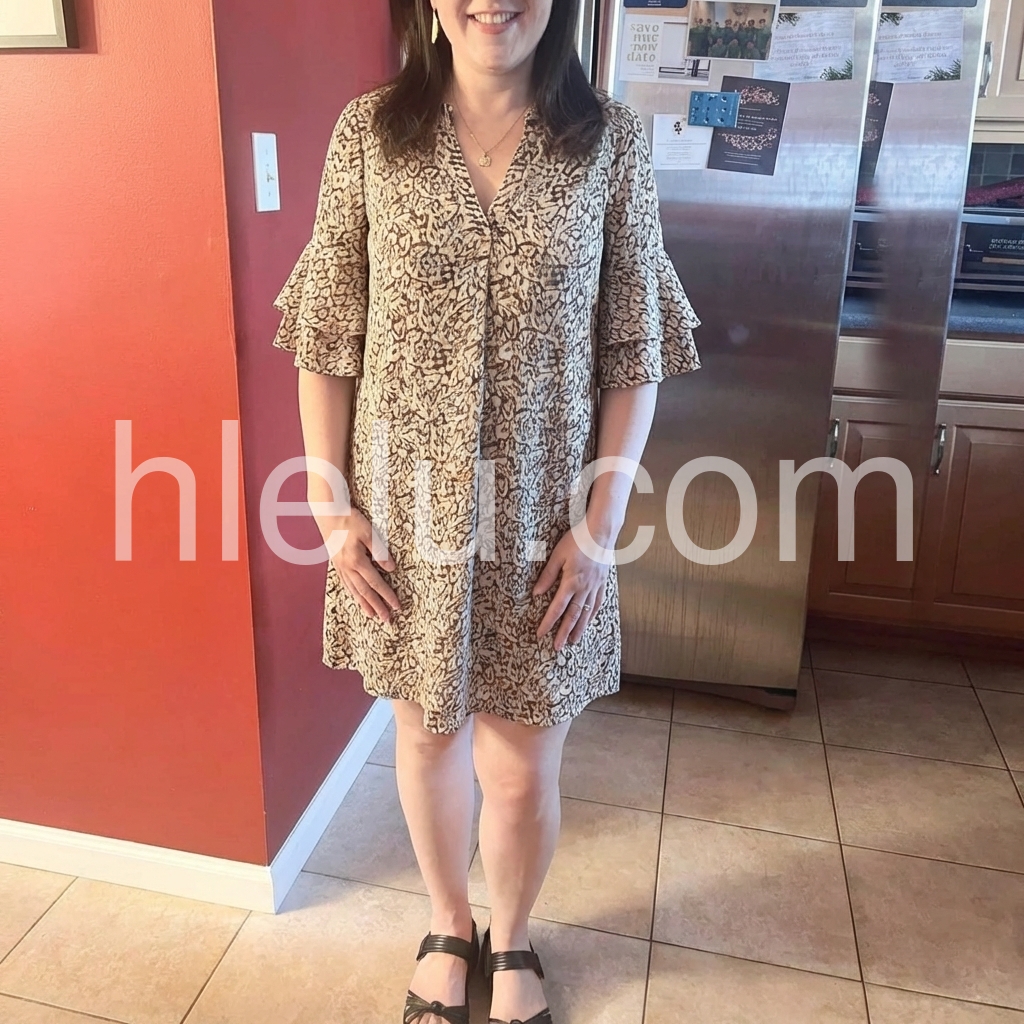 Abstract Print Double Ruffle Sleeve Shift Dress