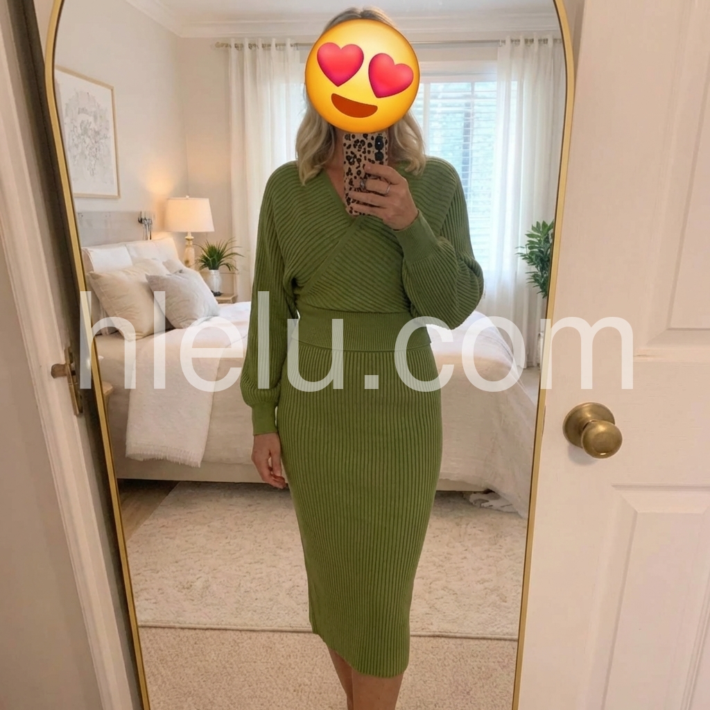 Upgrade your winter wardrobe with our Green Long Sleeve Plain Midi Sweater Dress. The stylish midi length and comfortable long sleeves make it perfect for any occasion. Stay warm and fashionable with this versatile piece.