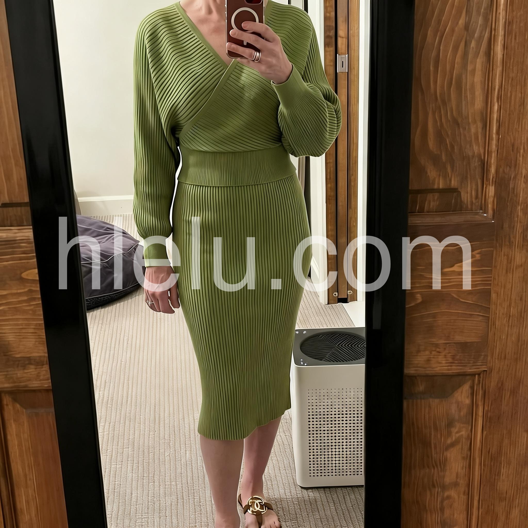 Green Long Sleeve Plain Midi Sweater Dress