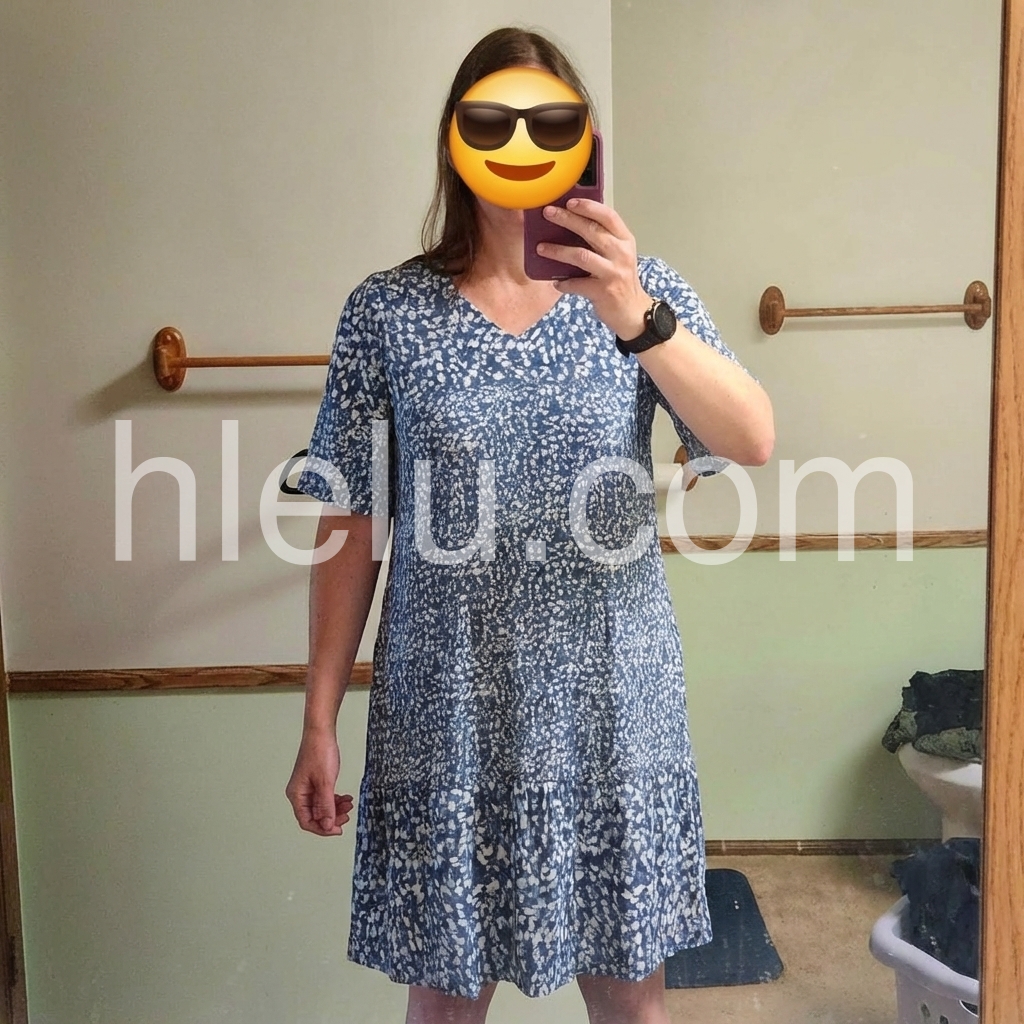 Adorned with a charming blue-and-white floral print, it brings a fresh, vintage vibe to your wardrobe. The subtle tiered hem adds gentle movement.