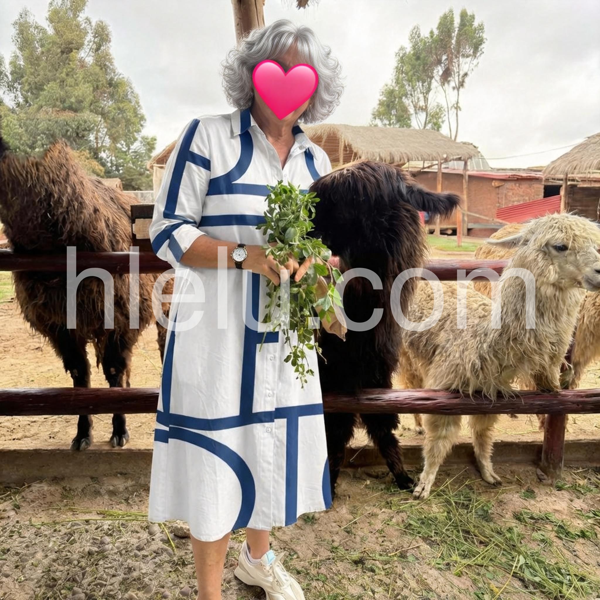 This trendy midi dress features a stylish striped print and a collared neckline, making it a versatile and fashionable addition to any wardrobe. With its eye-catching design and comfortable fit, this dress is perfect for any occasion and will keep you looking chic and on-trend. Upgrade your style with this must-have piece.